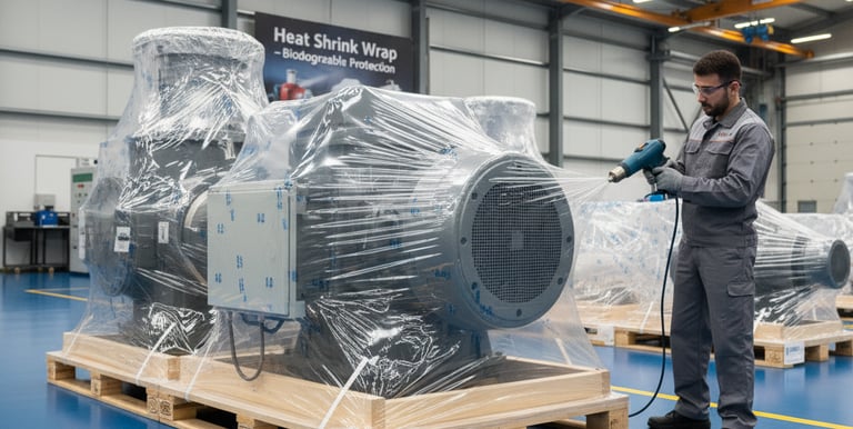 Uses controlled heat to apply a snug, protective, and biodegradable plastic wrap that protects against dust and water