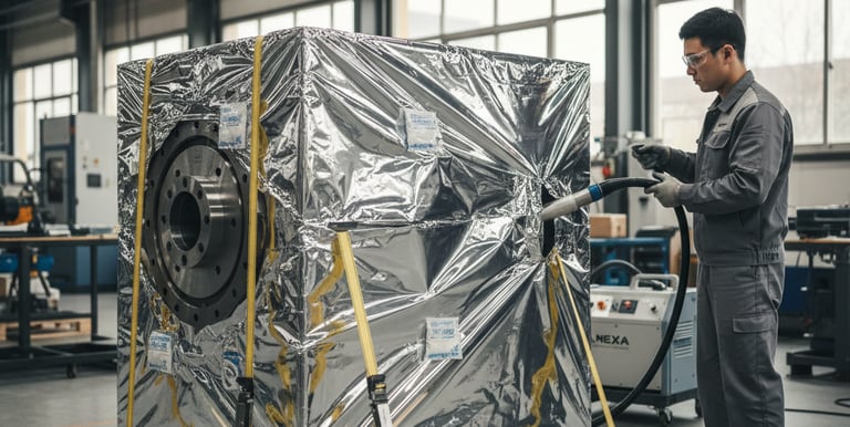 An advanced method that removes air and uses a protective aluminum foil barrier to prevent moisture, rust, and corrosion